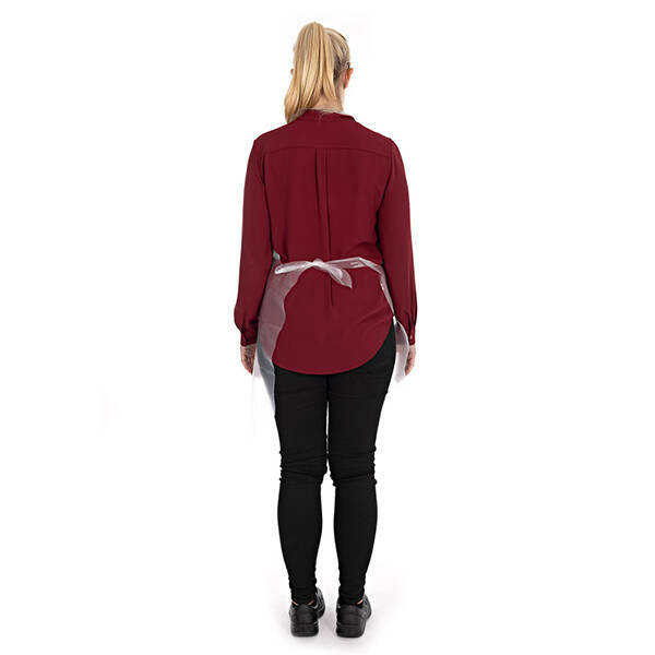 Einwegschürze für ein gepflegtes Aussehen: Mit dieser transparenten Latzschürze kommt die Kleidung Ihres Personals besonders gut zur Geltung. Die Einwegschürze ist fast unsichtbar und daher ideal für Service, Catering und überall dort, wo ein gepflegtes Aussehen und Hygiene wichtig sind.