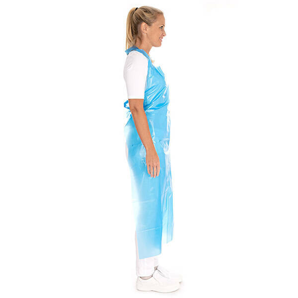 Diese Einwegschürzen sind lebensmittelecht und preisgünstig. Sie bestehen aus leichtem LDPE-Material mit einer Stärke von ca. 33 my. LDPE ist komfortabel und raschelt nicht beim Gehen. Die Latzschürzen haben eine geprägte Oberfläche und sind ideal für Lebensmittelverarbeitung, Gastronomie und Industrie. Die PE-Schürzen sind geblockt und besonders platzsparend aufzubewahren. Erleichtern Sie Ihren Mitarbeiter die Entnahme mit dem passenden Wandhalter für geblockte Schürzen. Die Schürzen werden einfach im Rücken mit zwei Bindebändern zugebunden.