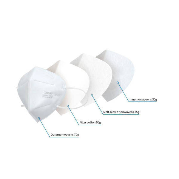 Zertifizierte Halbmaske mit 3-Schicht Filtersystem mit Zertifizierungsstandard FFP2. Ohne Ventil. In 5 Stück PE-Beuteln einzeln hygienisch verschweisst.